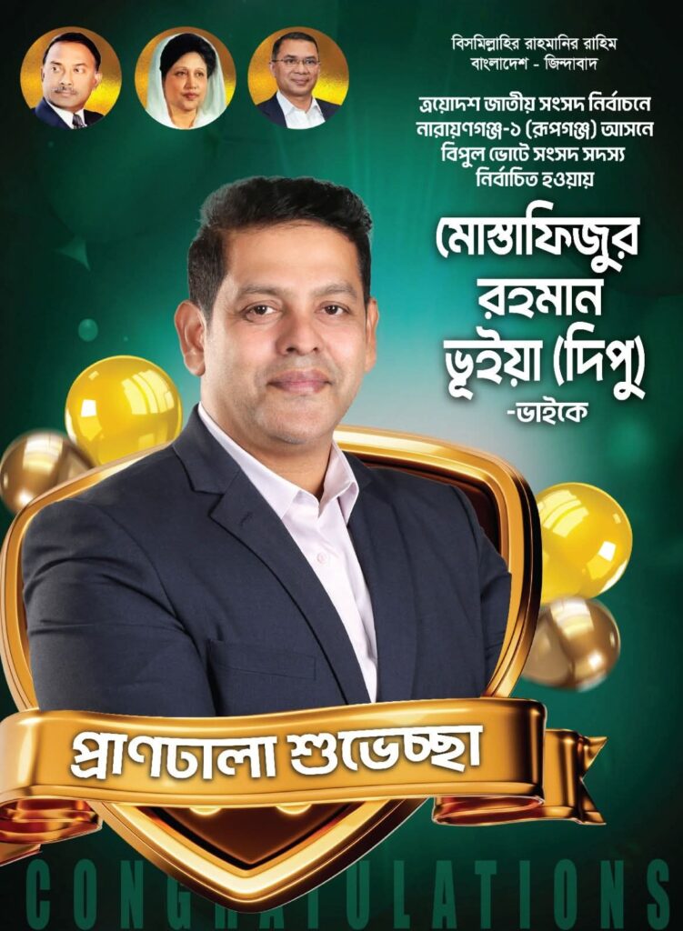 ত্রয়োদশ জাতীয় সংসদ নির্বাচনে আপনার বিজয়ের জন্য আন্তরিক অভিনন্দন। আপনার এই সাফল্য আমাদের জন্য গর্বের। ভবিষ্যতে আপনার নেতৃত্বে এলাকার আরও উন্নতি কামনা করি।